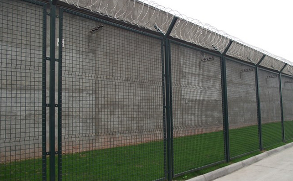監獄護欄網又稱作“Y型安全防御護網”,是由V型支架立柱,加強型焊接片網,安全防盜連接件和熱鍍鋅刀片刺籠組成強度和安全防御性級別很高。近年來,被廣泛應用在機場監獄,軍事基地等高安全場所。(注:如果在監獄護欄網頂部加裝刀片刺絲、刀片刺繩后又很好的增強了安全防護性能)。